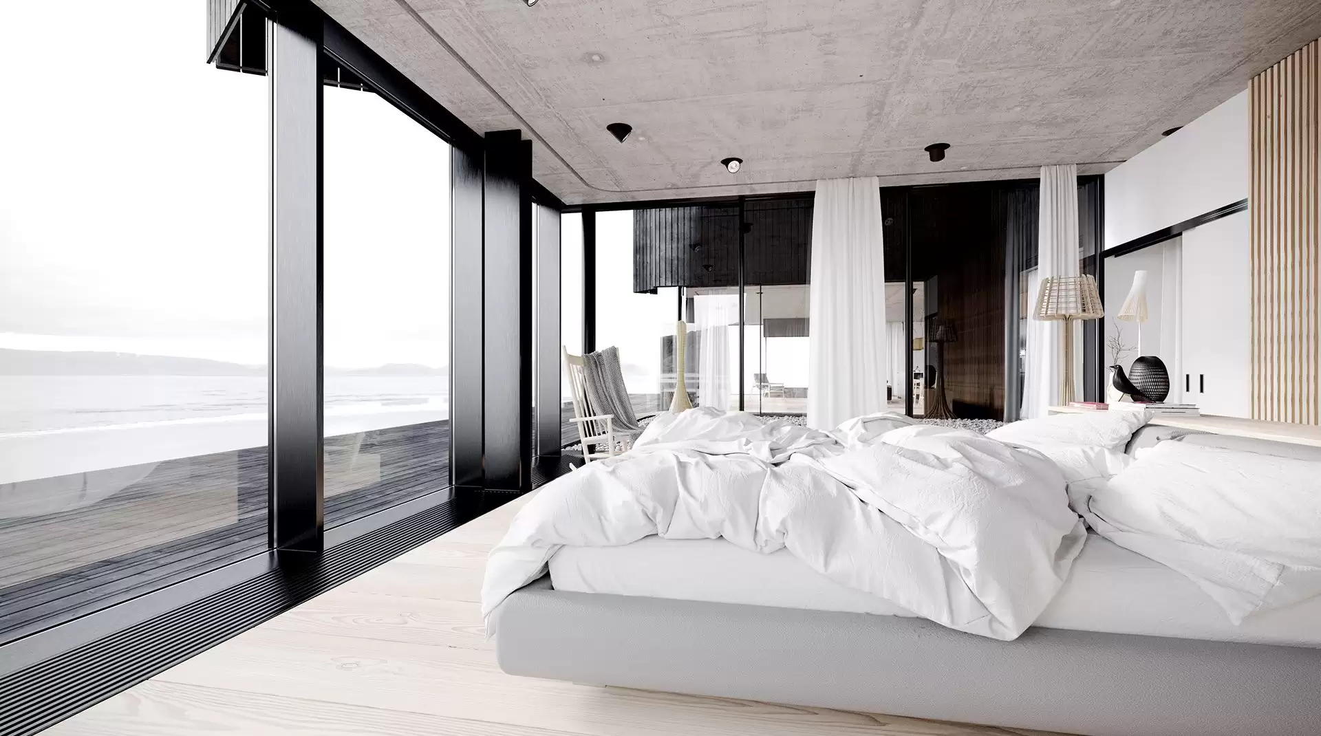 Incredible as always. This guys have excellent taste,modeling, texturing & rendering skills. The design fits in with what I would perceive as being Icelandic, the high wooden roof design and linear slatted interior elements and colours.